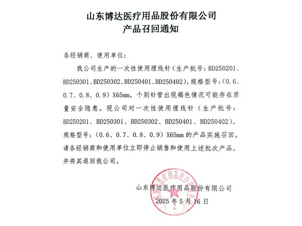 山東博達(dá)醫(yī)療用品股份有限公司是生產(chǎn)可吸收性外科縫線(xiàn)專(zhuān)業(yè)廠(chǎng)家,主要產(chǎn)品有可吸收縫合線(xiàn) 、內(nèi)窺鏡圈套線(xiàn)、穴位埋線(xiàn)、快吸收美容線(xiàn)、醫(yī)用羊腸線(xiàn) 膠原蛋白線(xiàn)以先進(jìn)的生物技術(shù)提取了健康哺乳動(dòng)物內(nèi)臟的膠原蛋白為基材,采用先進(jìn)的工藝加工而成,線(xiàn)體的主要成分為高純度膠原蛋白,并獲得了國(guó)家發(fā)明專(zhuān)利,頒布了YZB/國(guó)6301-2013《可吸收性外科縫線(xiàn)》產(chǎn)品標(biāo)準(zhǔn),并通過(guò)了ISO9001:2015和ISO13485:2016質(zhì)量管理體系認(rèn)證。